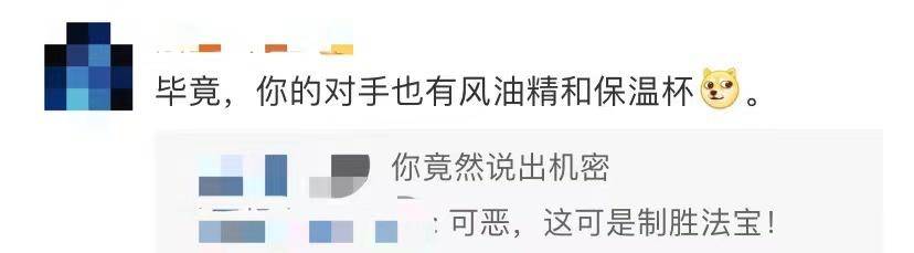 网友立刻献上神回复:毕竟你的对手都有保温杯和风油精。