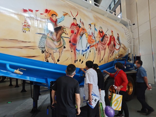 日前,在山东梁山举办的第十七届中国(梁山)专用汽车展览会上,喷涂有水浒人物“武松打虎”、“鲁智深倒拔垂杨柳”、“李逵背母”、“林冲雪夜上梁山”等一段段脍炙人口的经典桥段,被栩栩如生的绘制在了罐体上,这些罐车赢得众多客商的围观驻足。