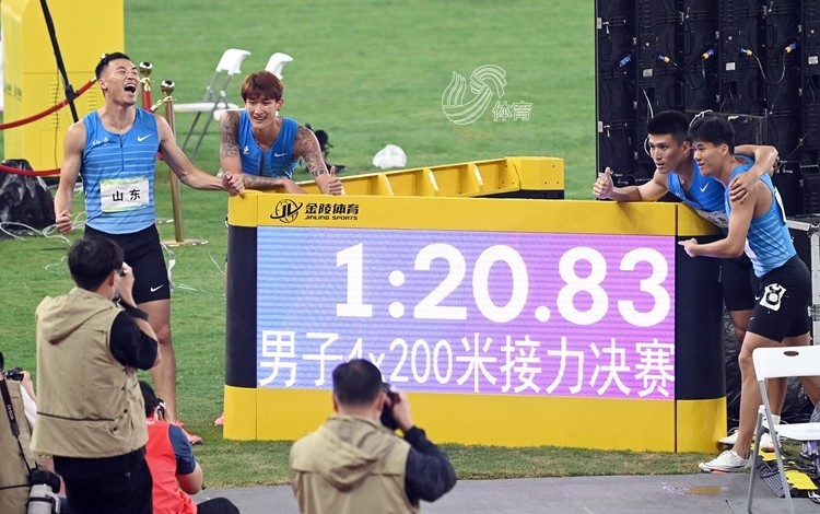 山东队在最后一棒落后的情况下一路追赶,抢在撞线前完成超越,以小于0.01秒的优势夺冠。四位运动员用1分20秒83的成绩,创下了新的亚洲纪录。