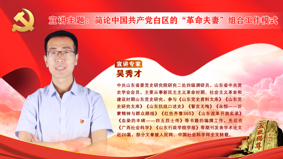 今天,吴老师为我们带来宣讲主题《简论中国共产党白区的“革命夫妻”组合工作模式》。