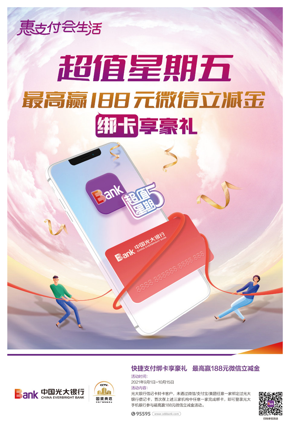 光大银行滨州分邀你参与超值星期五最高赢188微信立减金 大众报业·齐鲁壹点 2021-09-29 1016 中国光大银行推出惠支付会生活超值星期五活动,新客专享礼,最高赢88元微信立减金,绑卡豪享礼,最高赢188元微信立减金。活动时间:2021年9月1日-10月15日 责任编辑:董丽霞