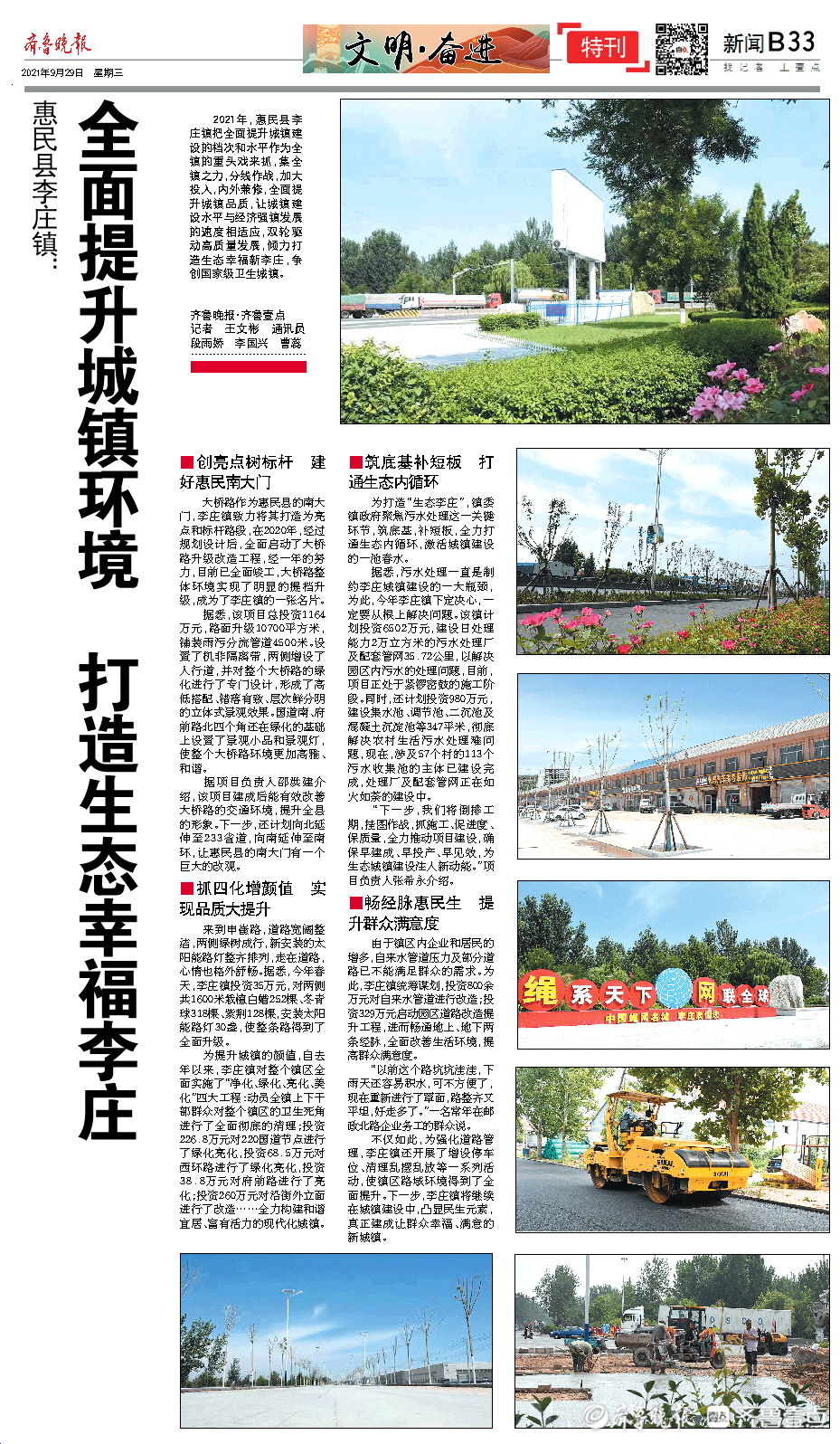 2021年,惠民县李庄镇把全面提升城镇建设的档次和水平作为当前全镇的重头戏来抓,集全镇之力,分线作战,加大投入,内外兼修,全面提升城镇品质,让城镇建设水平与经济强镇发展的速度相适应,双轮驱动高质量发展,倾力打造生态幸福新李庄,争创国家级卫生城镇。