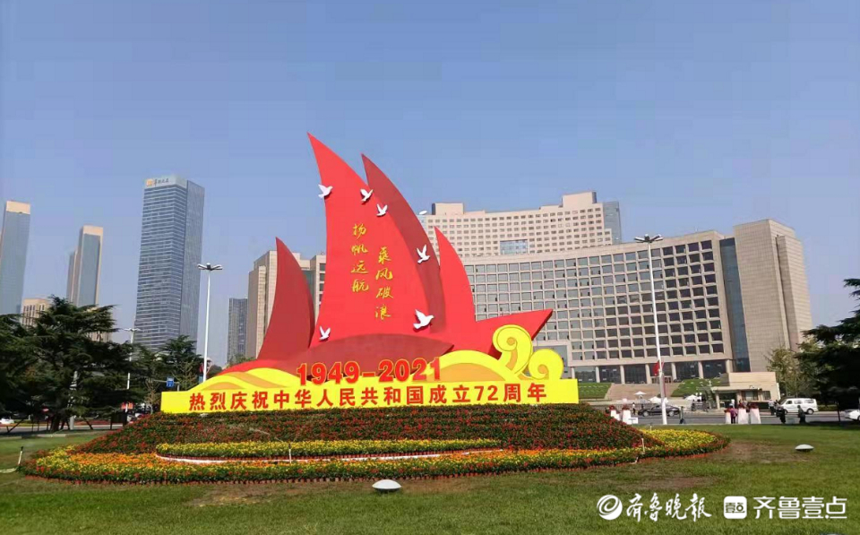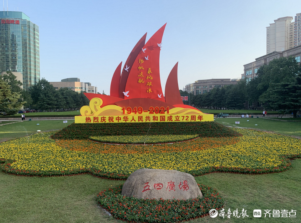 国庆景观亮相五四广场 大众报业·齐鲁壹点 2021-09-30 1886 齐鲁晚报·齐鲁壹点记者 尚青龙 国庆节来临之际,由青岛市贸促会(市会展办)承办的庆祝新中国成立72周年大型景观在五四广场正式落成。本次景观设计以破浪起航的红色帆船为主体,以“乘风破浪、扬帆远航”为主题,寓意着青岛向着伟大复兴的中国梦乘风破浪、扬帆远航。风帆上“乘风破浪、扬帆远航”八个主题大字,辅以和平鸽、浪花和环绕的鲜花,为节日的岛城增添了一道亮丽风景线。 责任编辑:姜淑芹