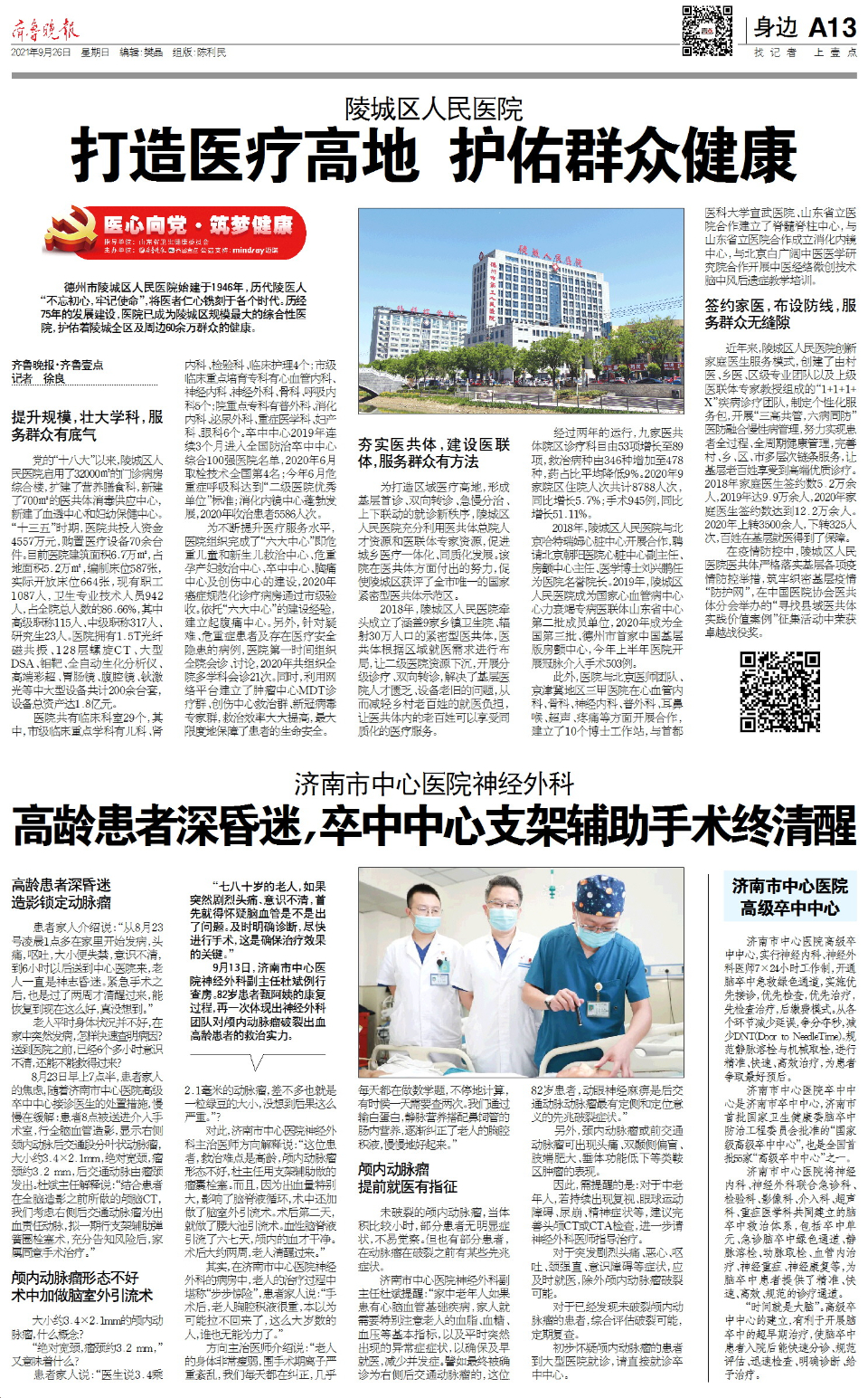 2021年是建党100周年,是“十四五”开局之年,也是山东的“乘势而上求突破,发奋图强开新局”之年。为更好地发挥山东省卫生健康系统党组织战斗堡垒作用和党员先锋模范作用,助力健康山东建设开启新征程,服务山东省卫生健康事业新发展,齐鲁晚报·齐鲁壹点特开设《医心向党·筑梦健康》大型融媒栏目。本期专访嘉宾:德州市陵城区人民医院副院长闫向东。