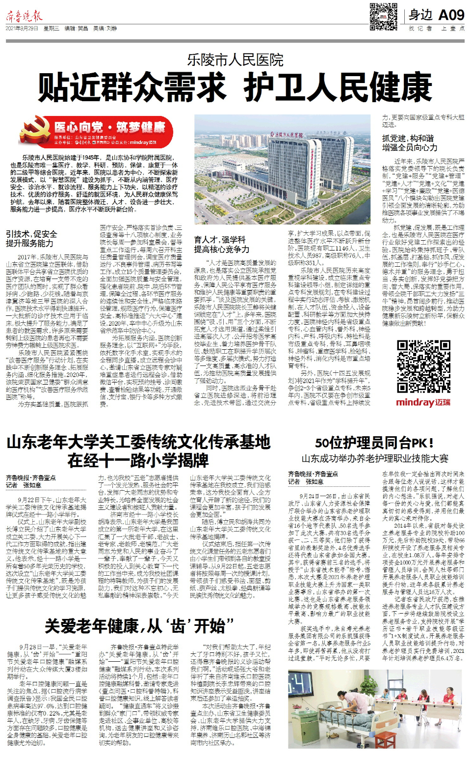 乐陵市人民医院始建于1945年,是山东协和学院附属医院,也是乐陵市唯一集医疗、教学、科研、预防、保健、康复于一体的二级甲等综合医院。近年来,医院以患者为中心,不断探索新发展模式,以“智慧医院”建设为抓手,不断从内涵管理、医疗安全、诊治水平、就诊流程、服务能力上下功夫,以精湛的诊疗技术、优质的诊疗服务、舒适的就医环境,为人民群众健康保驾护航。去年以来,随着医院整体搬迁,人才、设备进一步壮大,服务能力进一步提高,医疗水平不断跃升新台阶。
