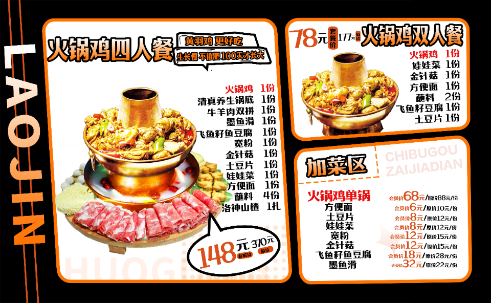 套餐一:火锅鸡双人餐,四人餐套餐&青岛优质啤酒买一送一活动