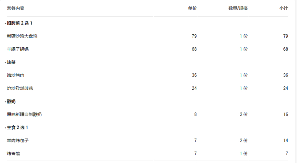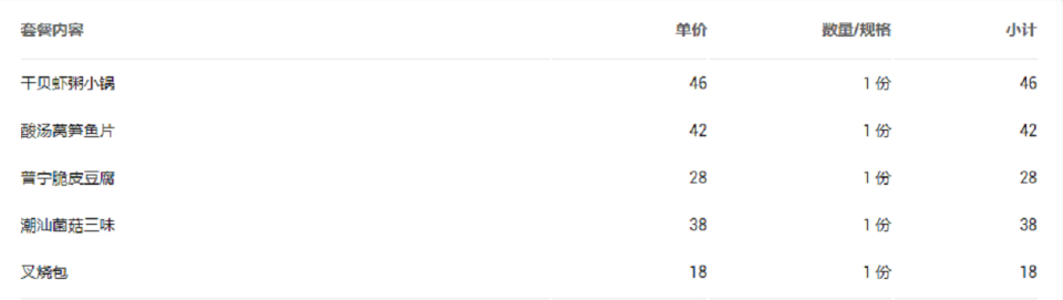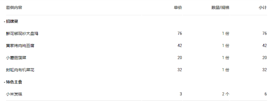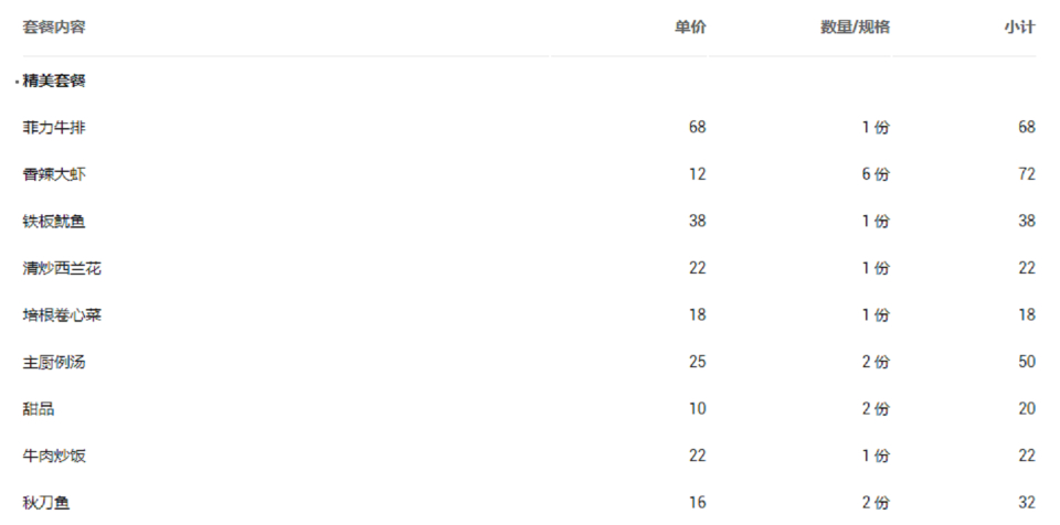 套餐内容