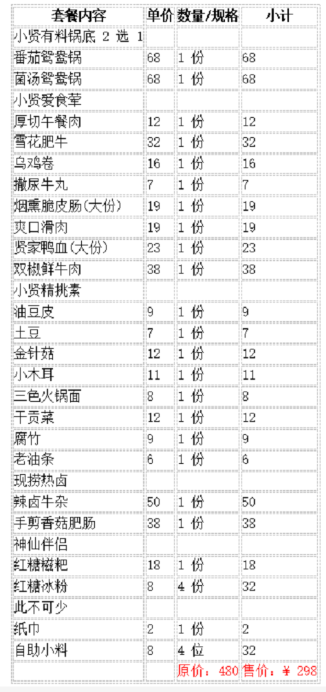 四五折,门市价329,套餐价4人餐148