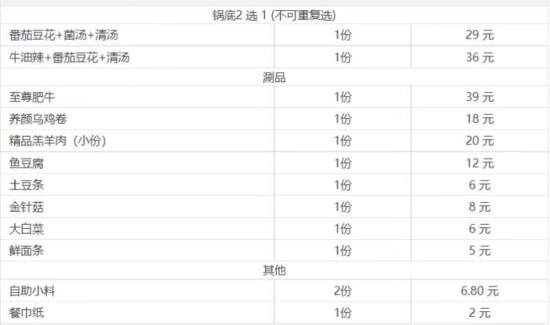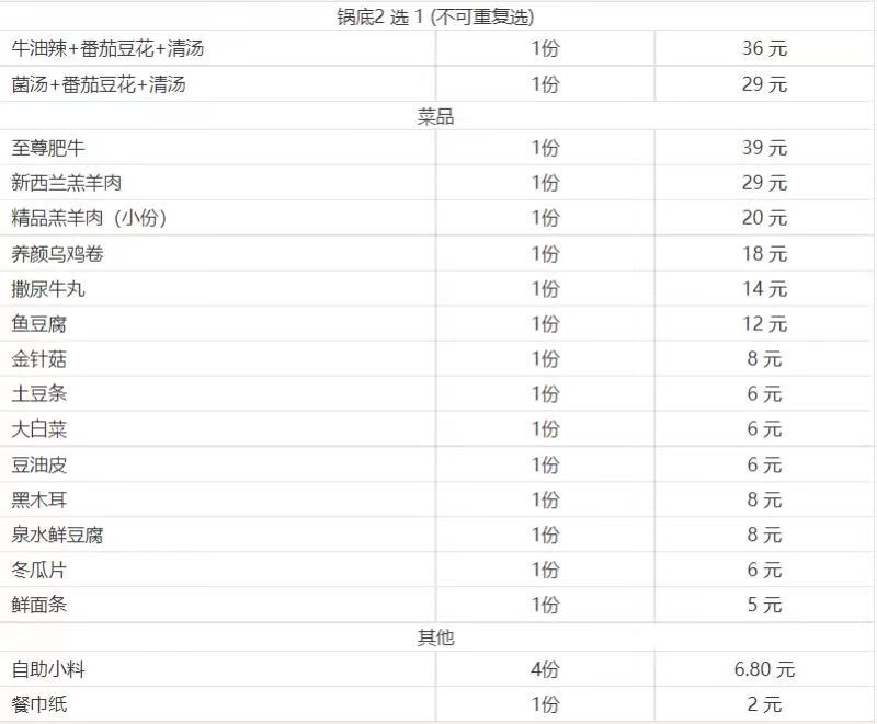 所有菜品8.8折(锅底,小料,酒水不含)