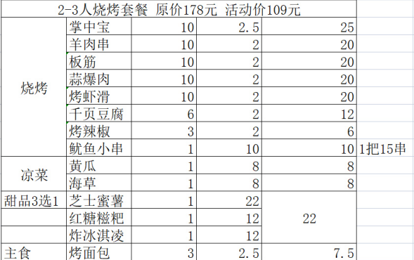 六一折抢购2-3人烧烤套餐! 原价178元 活动价109元