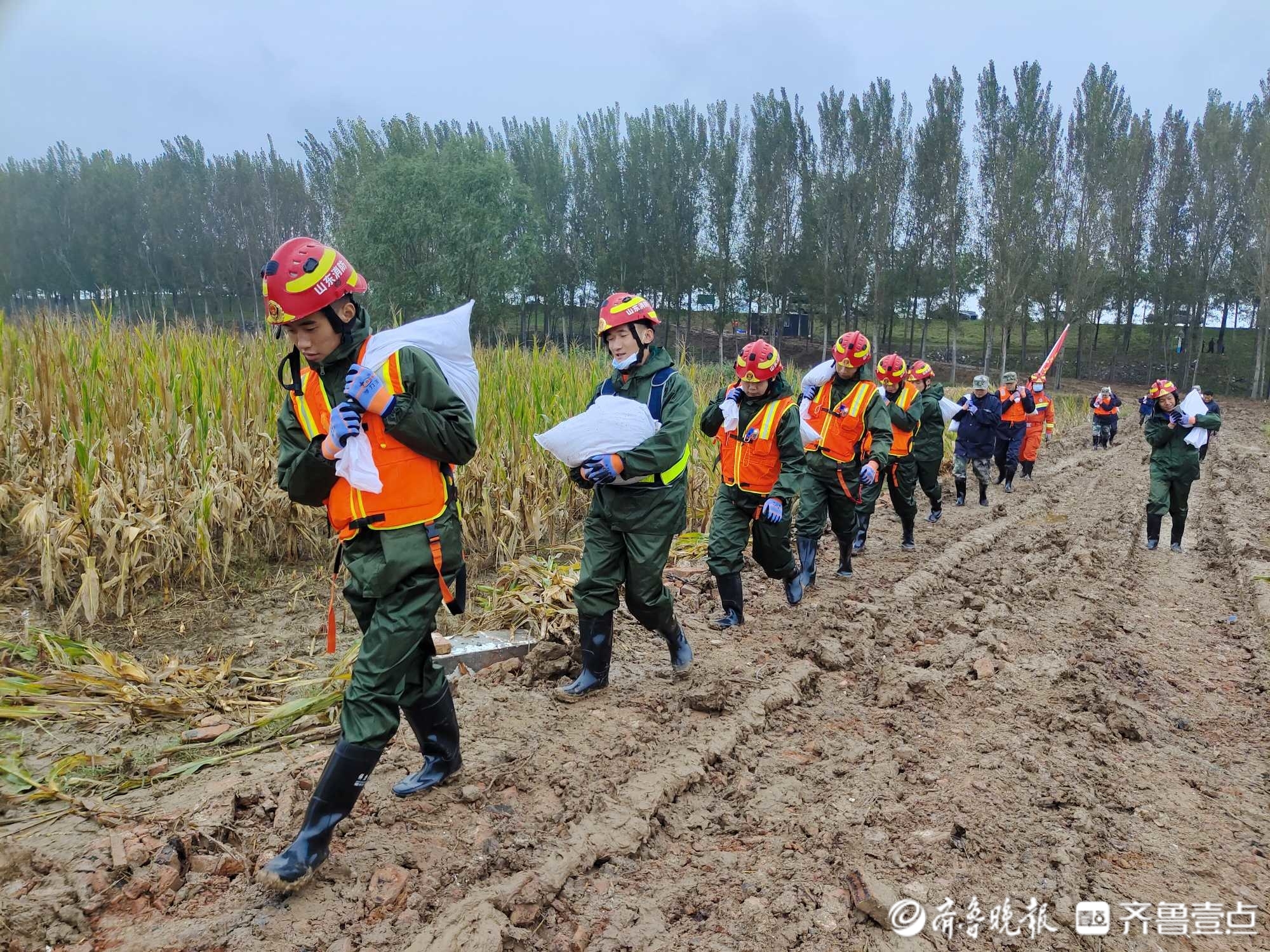 自10月5日接东营市防汛抗旱指挥部通知后,东营市消防救援支队迅速集结,先后出动消防指战员570人次,携带远程供水、浮艇泵、救生衣等,赶赴黄河秋汛洪水防御现场开展抗洪抢险救援工作。截至10月10日,共加固堤坝约4公里,巡查堤坝险情60公里,填装沙石1万余袋,编制木质护网150个、铅丝笼160个、柳树浮枕8个,架设草捆枕134个,铺设土工布3.1公里,运送加固物资木桩180根、玉米秸秆320捆。