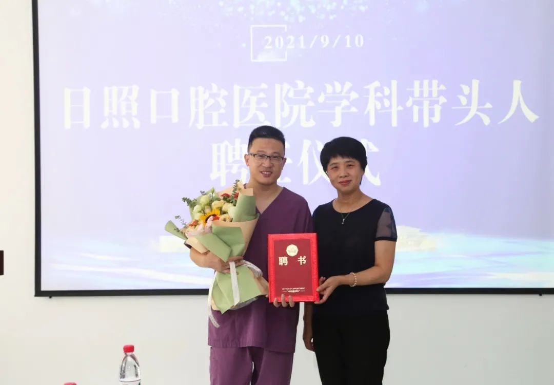 种植学科带头人张立卫专家也表示,“非常荣幸能成为日照口腔医院种植学科带头人,我深感责任重大,这对我来说是一个新起点,也是新的动力。今后我也将谨记医院嘱托,脚踏实地为病人提供满意和放心的医疗服务,让日照市民享受到更好的种植牙治疗,为医院的发展和建设贡献自己的力量。”随后,日照口腔医院李院长分别为两位学科带头人颁发聘书并合影留念,本次学科带头人聘请仪式圆满结束。