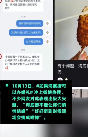 10月13日,如果海底捞可以办婚礼冲上微博热搜,不少网友对此表现出极大兴趣。对此,海底捞客服表示,如果客人有此需求可以留下信息,会有专人对接安排,且该服务并不限于某些特定城市。
