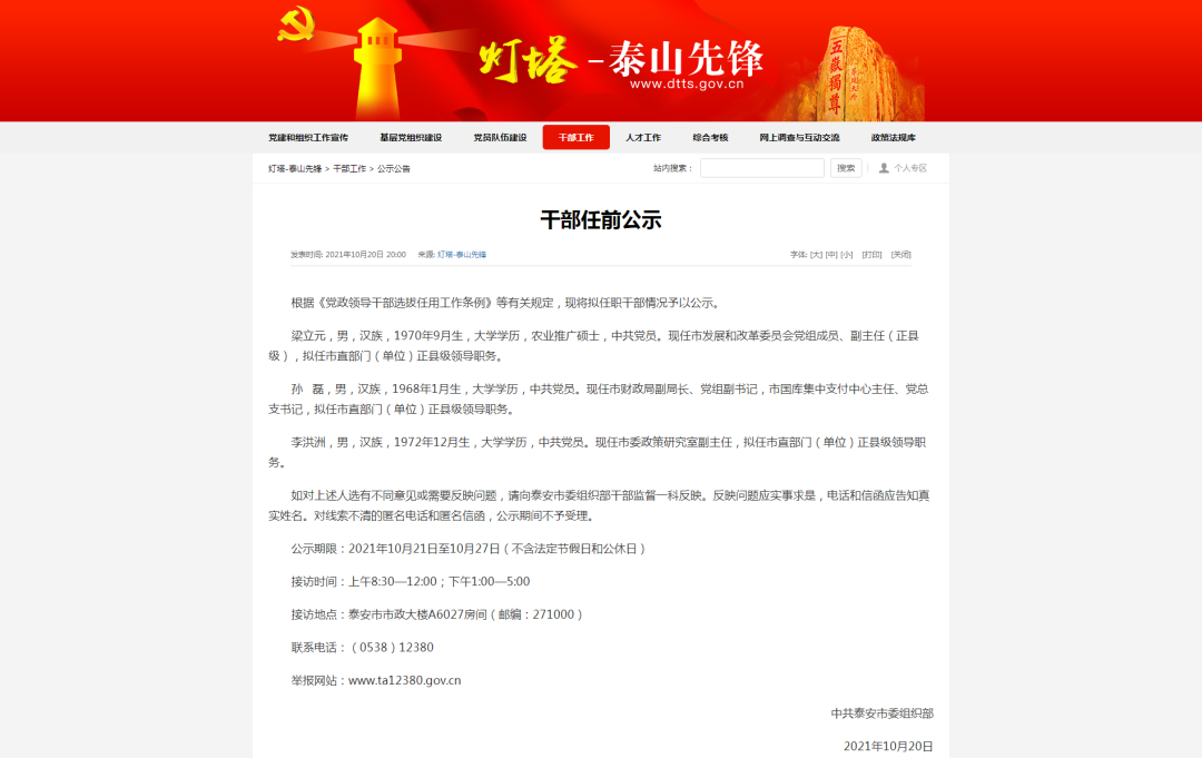 如对上述人选有不同意见或需要反映问题,请向泰安市委组织部干部监督一科反映。反映问题应实事求是,电话和信函应告知真实姓名。对线索不清的匿名电话和匿名信函,公示期间不予受理。