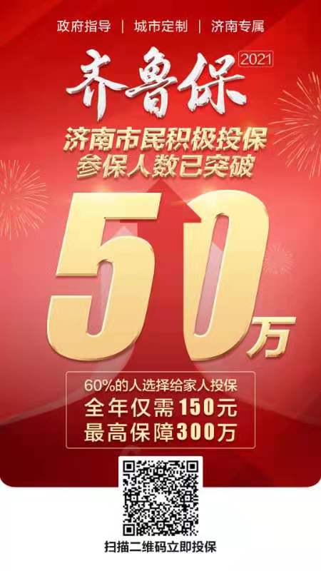 齐鲁晚报·齐鲁壹点记者获悉,“齐鲁保2021”自上线以来受到济南市民的广泛关注,截至10月20日,“齐鲁保2021”参保人数已突破50万,相当于约每10秒钟,就有1人投保。