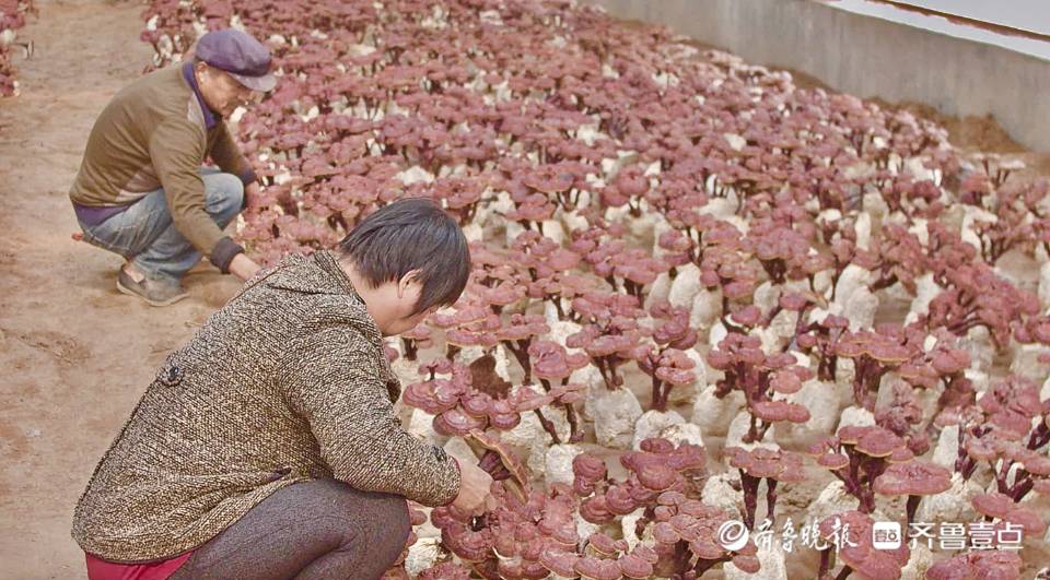在店子镇有一句流行语:“早知冠县灵芝好,不去峨眉盗仙草。”灵芝成熟期可以喷射孢子粉,灵芝片可以做药材,废弃的菌包还能做有机肥,可以说,灵芝浑身都是宝。