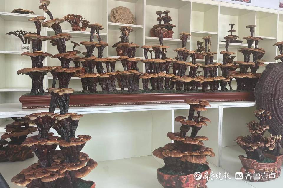 在灵芝文化产业园展览室里,百余盆灵芝盆景一株一景,造型别致。一盆灵芝盆景根据大小和造型不同,售价在几百元到几千元不等,这让灵芝有了更高的产品附加值,董学堂就是灵芝盆景的创始人。
