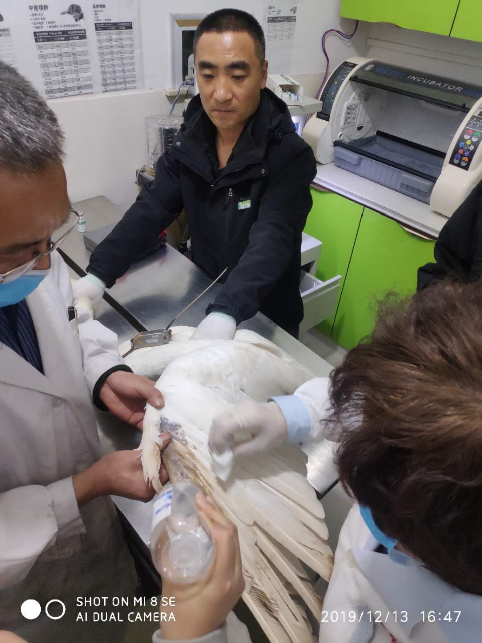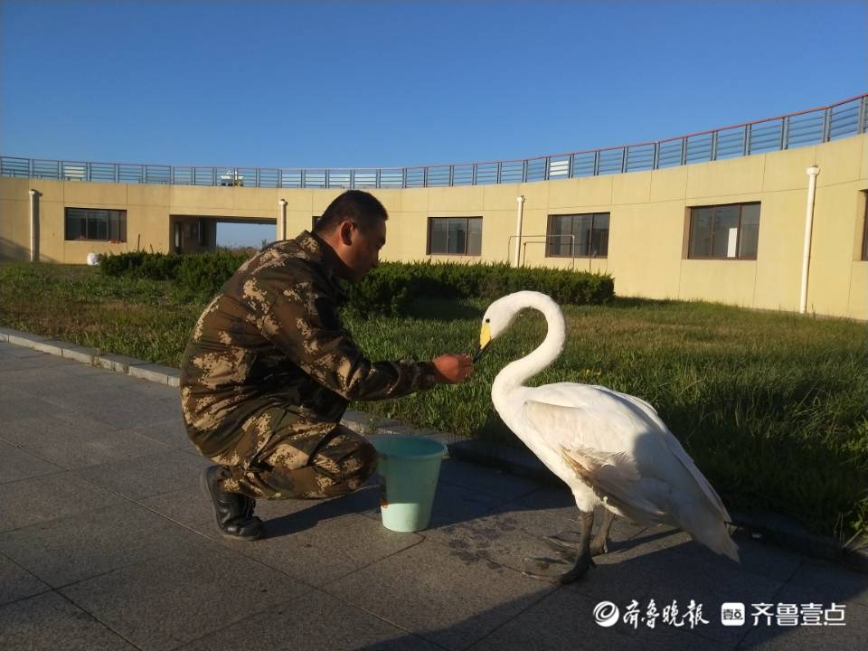 “当时我们都没有信心,伤得太重了,脖子、翅膀都有伤,野生的鸟气性也大。”李建说,一开始,天鹅伤势太重,反而任他摆布,“喂食物虽然费工夫,但是却能让它吃进去。”