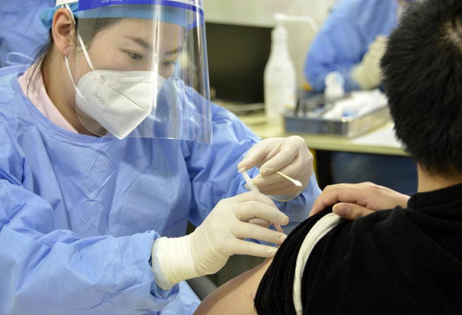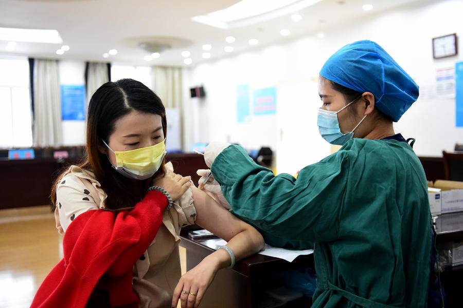 2021年10月16日,在安徽合肥,市民在接种新冠病毒疫苗加强针。新华社记者 黄博涵 摄