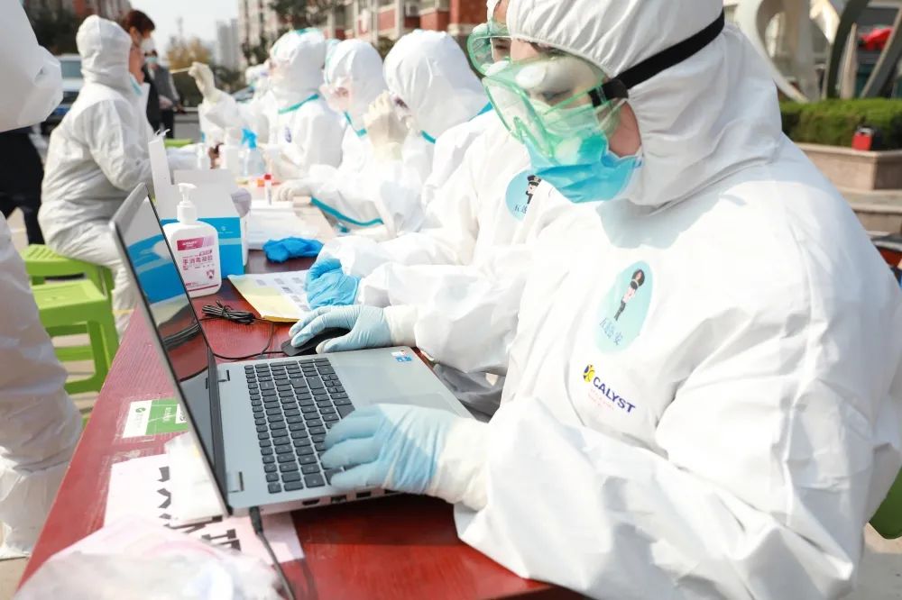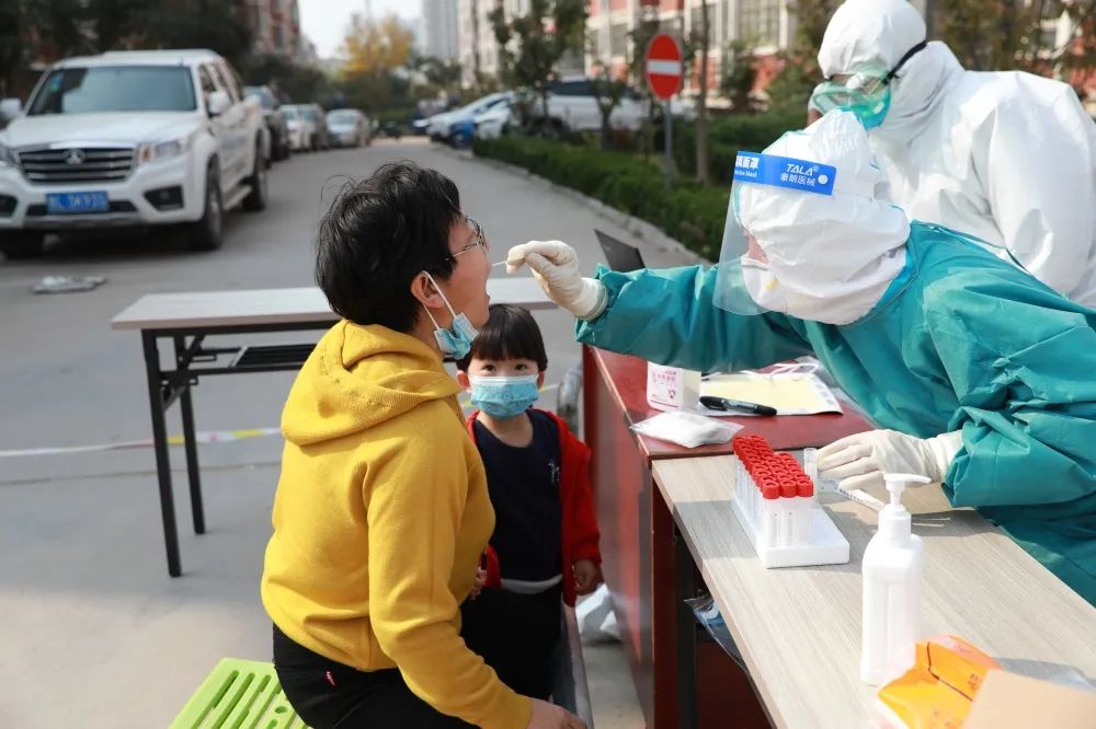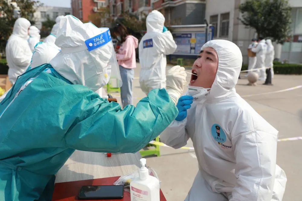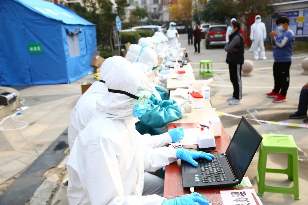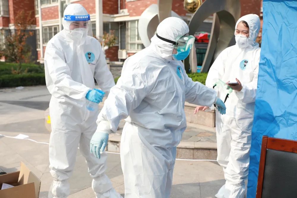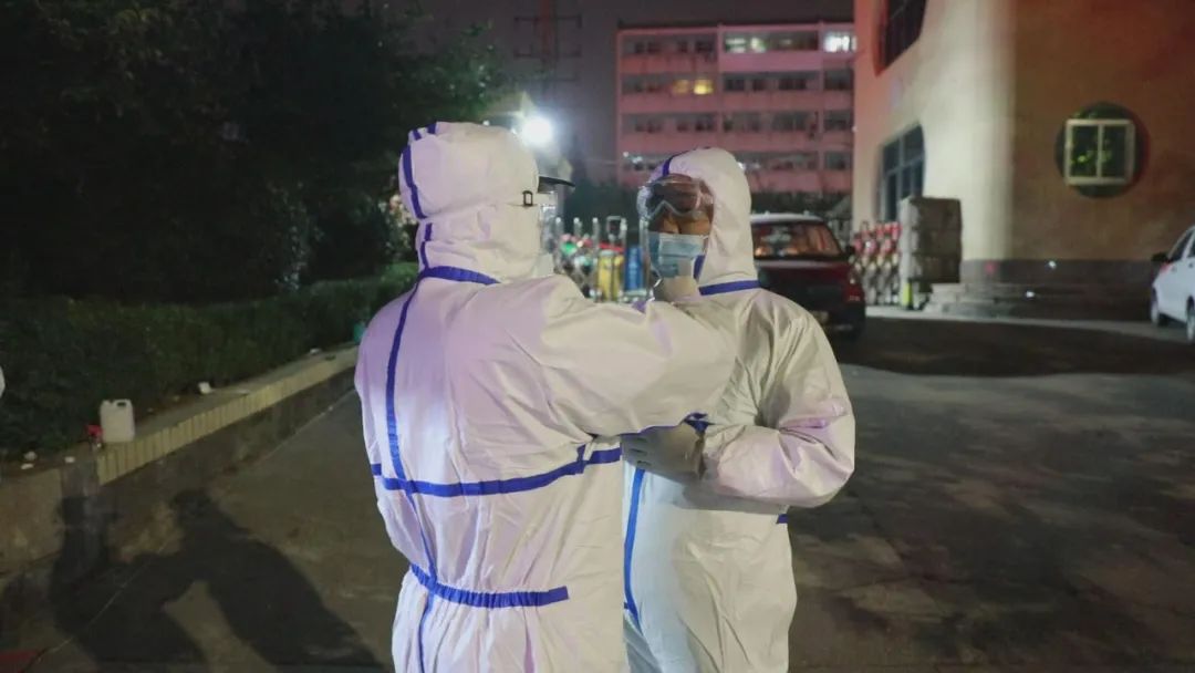 当所有群众的核酸检测都已做完了。他们也开始取样,做核酸检测。