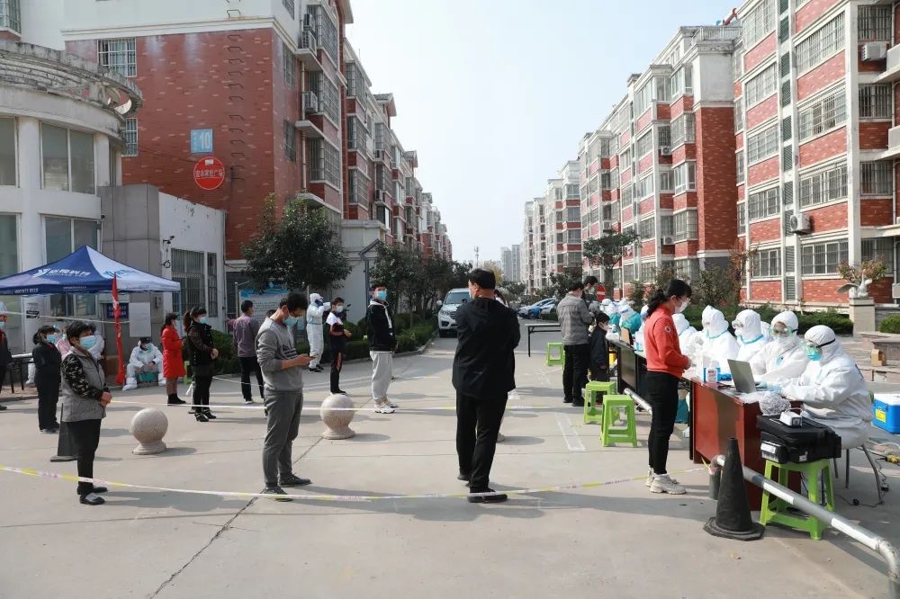 小区群众由物业在群内通知,分单元楼号依次前往进行核酸检测。所以现场人看起来并不多。