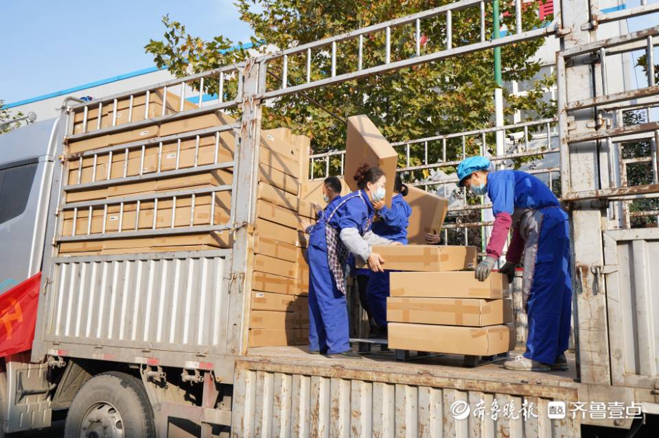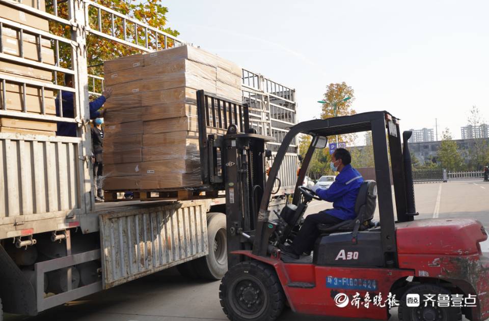装车现场,叉车一次次的搬运着物资,工作人员也不停地整理着货物。一张健身地垫、一根智能跳绳或者一个哑铃,不仅是防疫物资,更包含对五莲人民健康运动、提高免疫力的殷切期望。