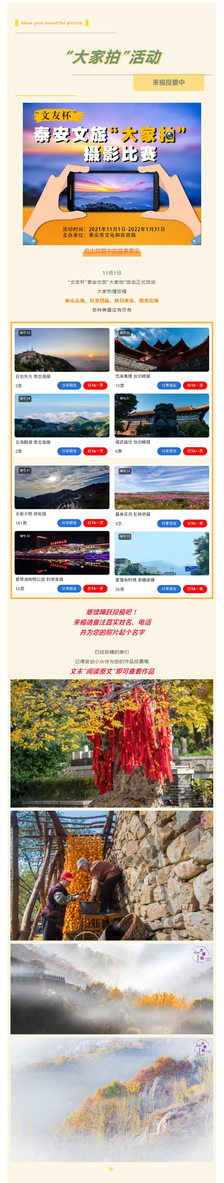 泰安文旅"大家拍"投票开启,持续征稿!来稿别忘备注姓名、电话