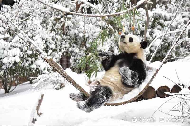 除了老虎,雪势小时,大熊猫也会在保育员的看管下出来看看雪,“雪下得小,会放大熊猫出来让它们玩一会,今天雪下的比较大,就早早收回去了。”大熊猫也是耐寒动物,有较厚的皮毛,冬天保育员会给它们提供高热量的食物,助大熊猫们度过寒冬。