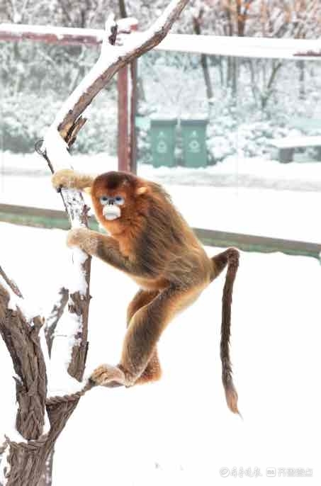 “还有其他一些动物包括金丝猴、大羚羊、小天鹅等等,保育员们也会放它们出来玩一会,感受一下初雪。”展厅中,金丝猴正在落了雪的树枝上攀爬,身形敏捷,动作灵巧。即便室外温度已经接近零度,也没有影响它们在室外的活动。