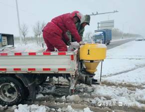 目前,出动养护人员150余人,车辆设备55台,撒布融雪剂30余吨,确保国省干线道路安全畅通。