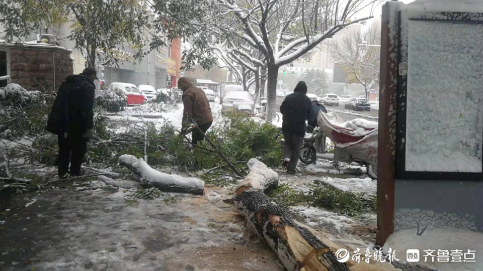 临近中午,降雪量持续加大,该局300余人放弃周末休息时间,全员出动,调度除雪车1辆、铲车12辆、融雪剂10吨,走上街头投入一线,对重点路段、人车流密集节点进行融雪剂撒布和除雪作业。同时,为保护树木,防止积雪压断树枝,砸伤市民,该局分出专门人员,及时清理树枝积雪。对于被大雪压垮的枯木落枝,及时进行清理,保证道路交通畅通。