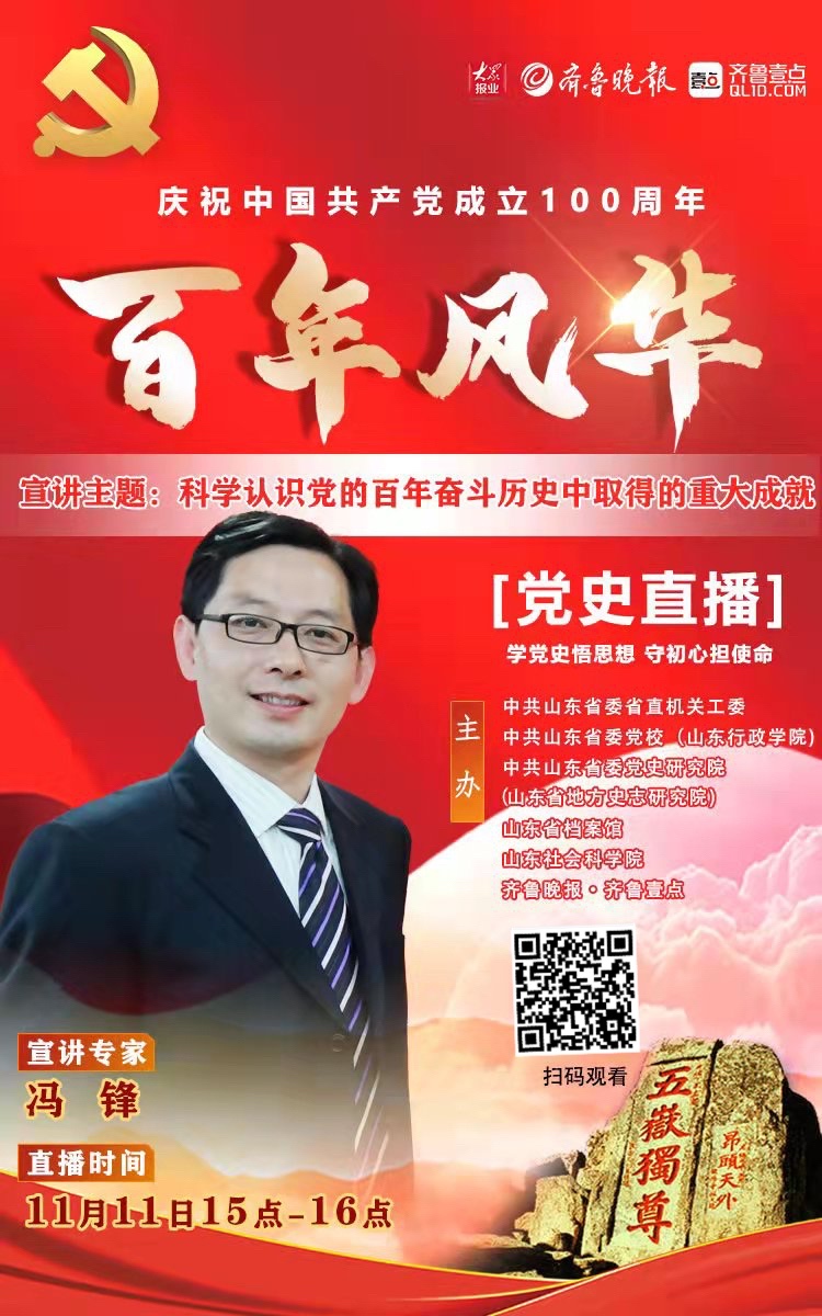 海报|冯锋:《科学认识党的百年奋斗历史中取得的重大成就》 云端党课 2021-11-11 8599 学党史悟思想,守初心担使命。中共山东省委省直机关工委、中共山东省委党校、中共山东省委党史研究院(山东省地方史志研究院)、山东省档案馆、山东社会科学院与齐鲁晚报·齐鲁壹点联合主办《“百年风华”党史直播》。第18期直播嘉宾冯锋:《科学认识党的百年奋斗历史中取得的重大成就》 责任编辑:李和晴