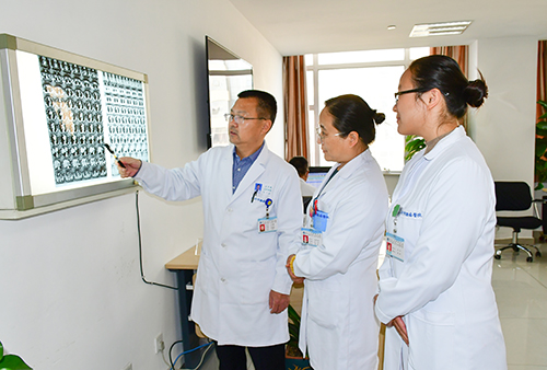 阳光明媚。近日,记者来到临沂市肿瘤医院内一科(中西医结合科)采访该科主任王兴春时看到,即使已经是主任医师的他还在认真读书,旁边的笔记本上密密麻麻地记满了笔记。对于一名医者来说,“活到老、学到老”是他们的共同特质。1992年,从山东中医药大学毕业的王兴春来到临沂市肿瘤医院工作。专门从事肿瘤的治疗与研究,但这期间:1996年,他来到中日友好医院进行“中西医结合防治肿瘤”方面的进修学习;2006年到上海中医药大学附属龙华医院参观学习,之后在2008年,意犹未尽的他再次前往上海参观学习……数年来,王兴春主任一直未曾间断对医学真理的探究,他一直都在用努力证明自己对祖国医学的无限热爱。
