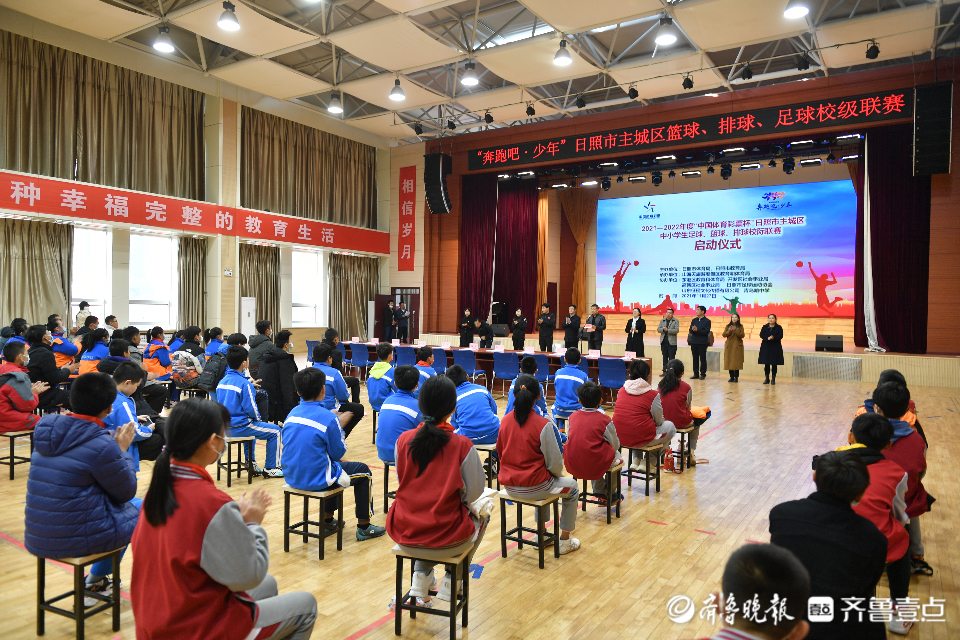 11月27日上午,“奔跑吧•少年”儿童青少年主题健身活动暨2021-2022年度“中国体育彩票杯”日照市主城区中小学生足球、篮球、排球校际联赛正式开赛。本次比赛由日照市体育局、日照市教育局主办,山海天旅游度假区教育和体育局承办,东港区教育和体育局、开发区社会事业局、高新区社会事业局、日照市足球运动协会、山东征程文化传播有限公司协办。