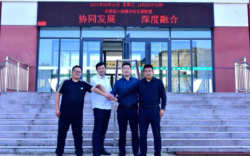 流泉完小联合濮邱小学、曹家庄小学、社庄小学,成立沂源县首个小规模学校发展联盟。左一为流泉完小校长董元宏。