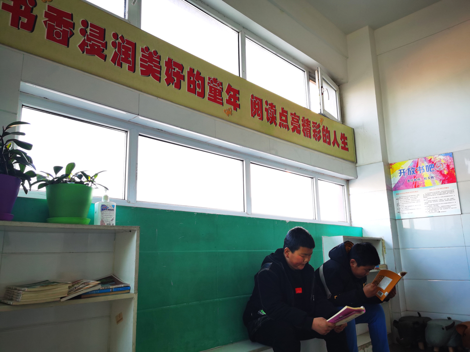 流泉完小设立了开放书吧,清晨有学生在此读书。齐鲁晚报·齐鲁壹点记者 巩悦悦 摄影报道
