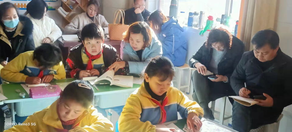 11月25日,在流泉完小四年级的一堂语文课上,教室后排听课的老师人数比学生还多。