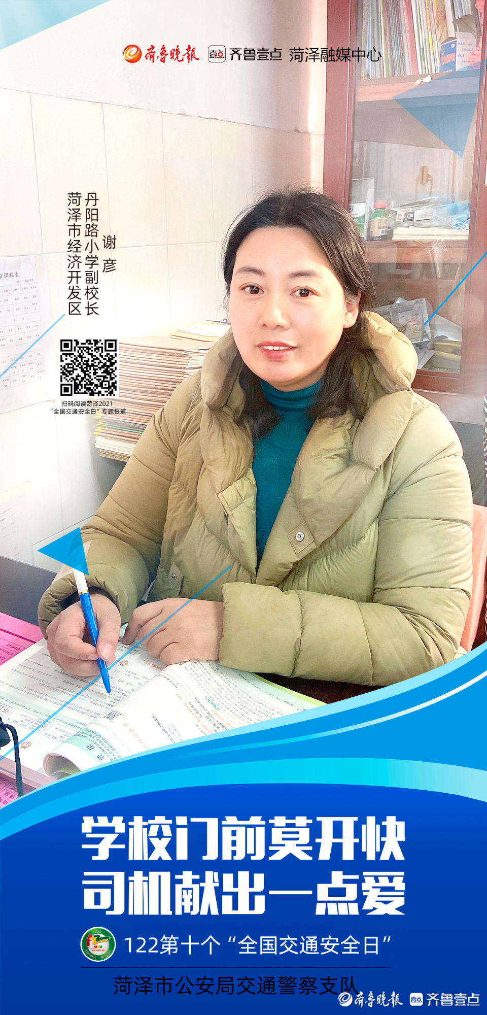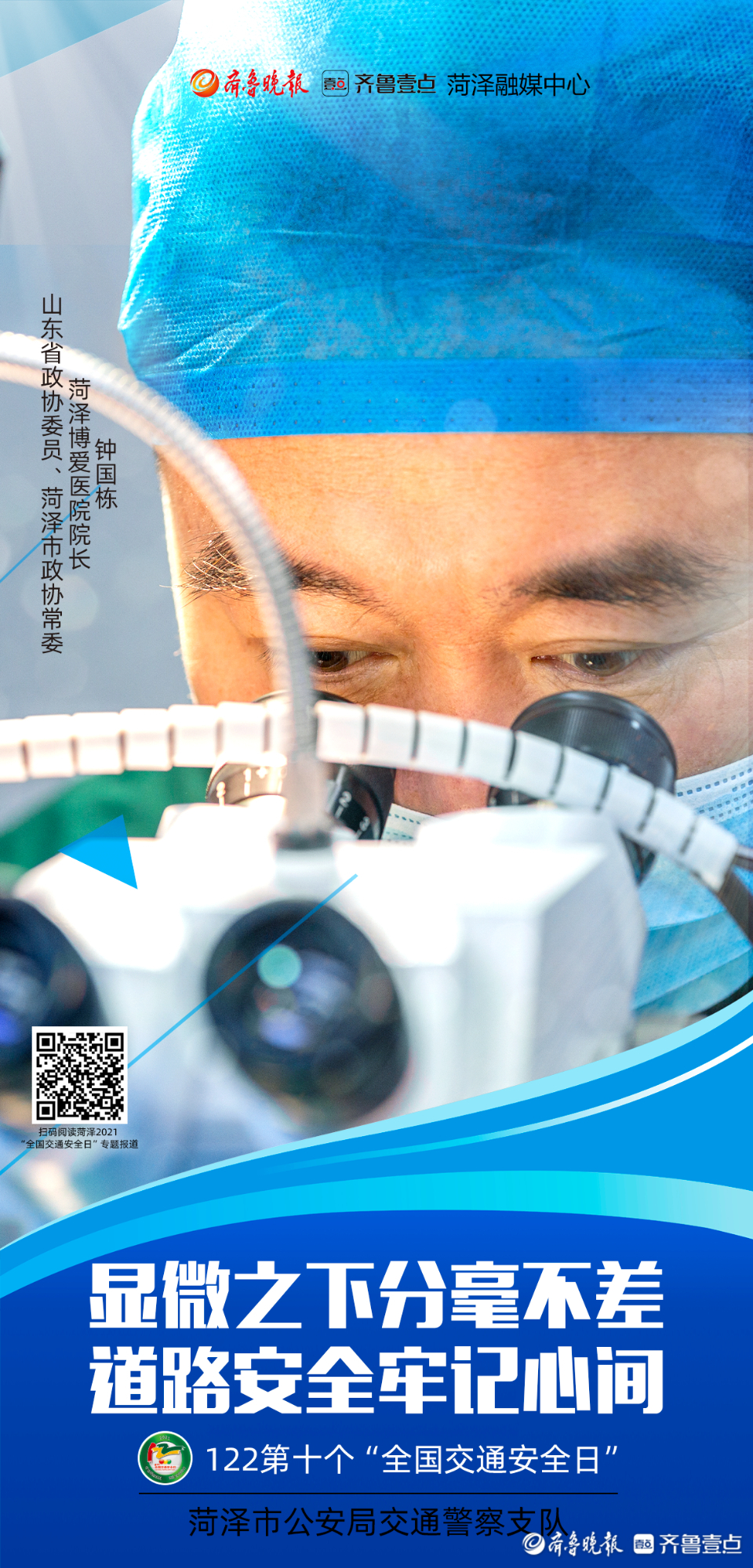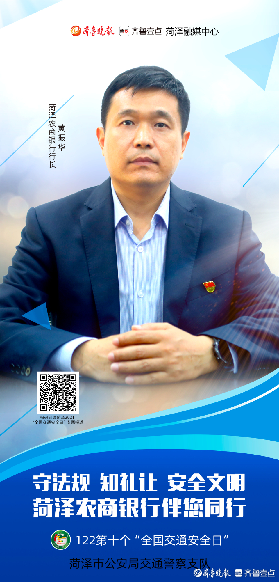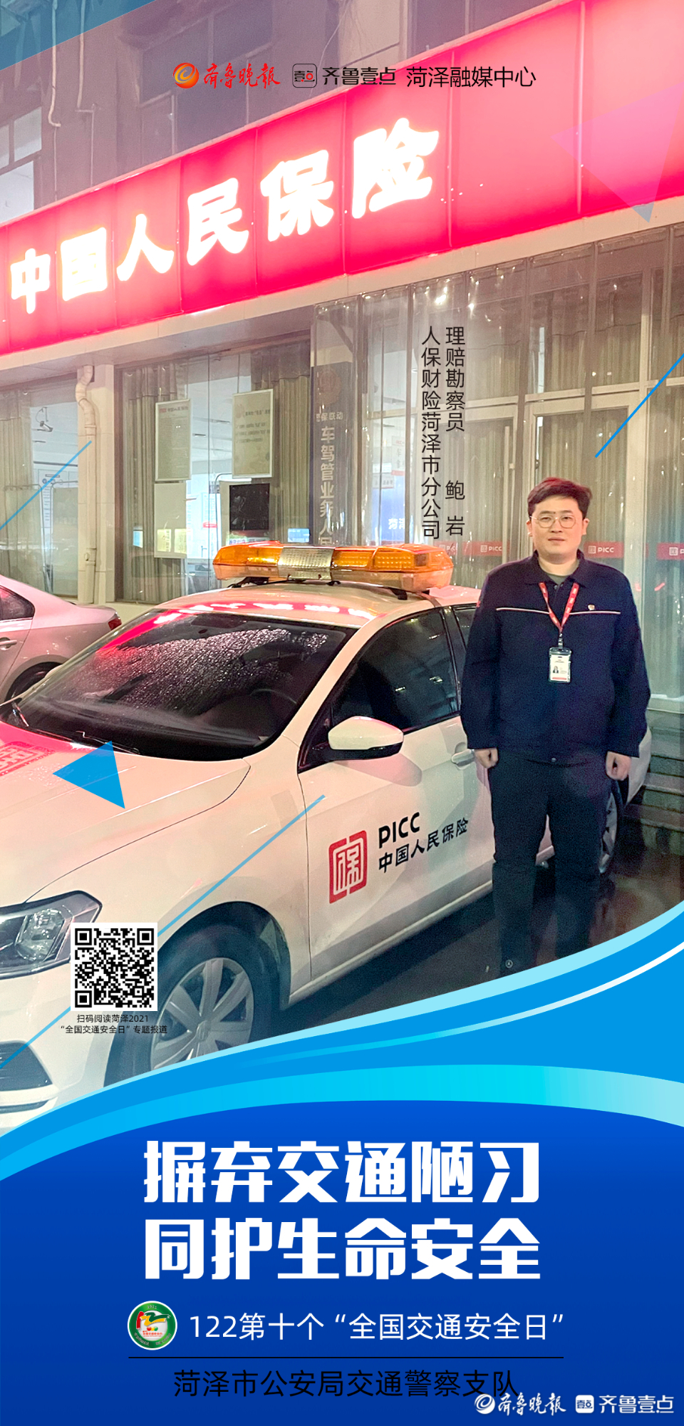 今年12月2日是第十个“全国交通安全日”。为进一步做好系列宣传活动,从源头上预防和减少道路交通事故,菏泽市公安局交通警察支队联合齐鲁晚报·齐鲁壹点菏泽融媒中心推出第十个“全国交通安全日”系列海报。海报以菏泽市公安局交警支队支队长李合力和菏泽市公安局高速交警支队支队长李洪淼的寄语为开篇,各行各业代表为“交通安全”代言,用通俗易懂的方式提醒市民交通安全的重要性。