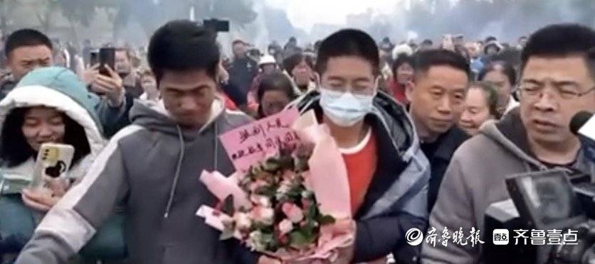 下午一点半左右,孙海洋带着孩子到达老家。孙卓一下车,就有亲人送上了花束,被亲人朋友围住,而孙海洋张开双臂始终护着孙卓。