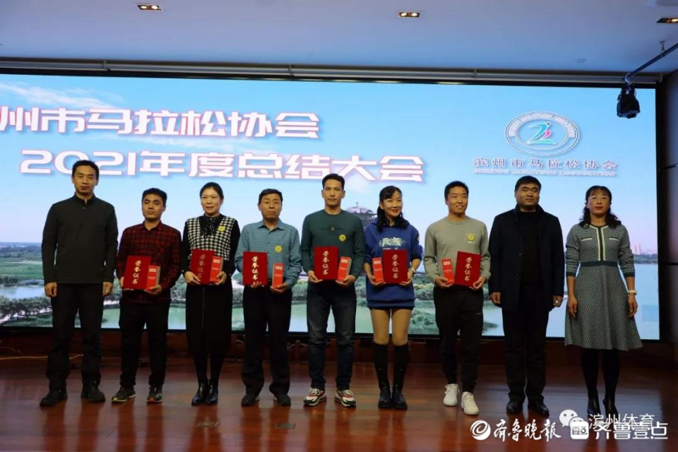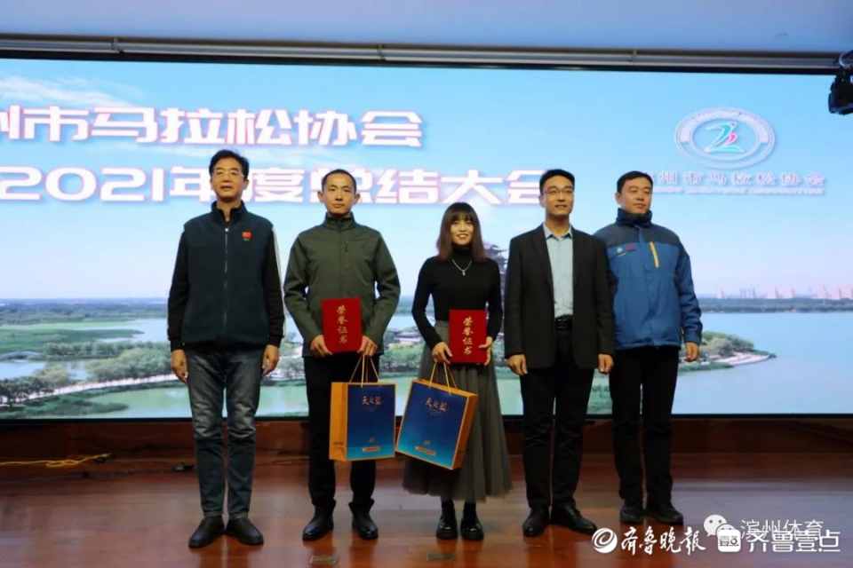 滨州市马拉松协会会长孙彬针对2021年度协会工作进行了全面系统的总结,汇报去年的工作和成绩,剖析协会发展的问题,对下一步工作进行了部署和展望。会议颁发了2021年度优秀会员奖、优秀组织奖、滨州速度奖等奖项;滨州市艺术摄影学会副主席、滨州市电影电视艺术家协会副主席、“齐鲁优秀摄影师”刘杰为协会会员赠送个人出版的摄影画册套装。随后,精彩的舞蹈、歌曲演唱、抽奖小游戏等节目更是为年会增添欢乐气氛。