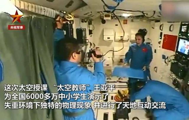 中国首位“太空教师”王亚平在太空给地面学生讲课,