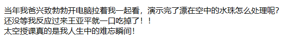 此外,太空授课必须考虑失重环境的影响,比如必须保证教具能在失重条件下使用,航天员在失重条件下摄像如何保持稳定,都需要练习。