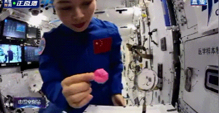 在八年前的神舟十号太空课堂中,王亚平就曾在太空成功制成了一张漂亮的水膜,并在水膜上贴上了一个小小的道具,道具上印着一个“中国结”。
