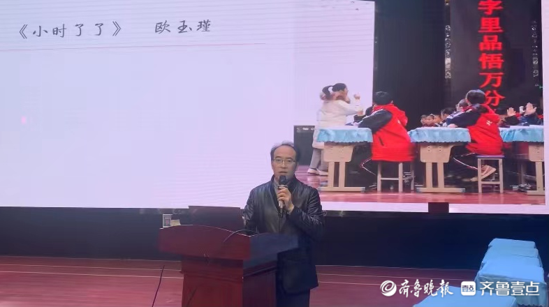 教师欧玉瑾执教了五年级上册第三学程《小时了了》围绕“智慧的语言”展开,通过游戏激发学生的兴趣。让学生在读中悟、悟中诵。