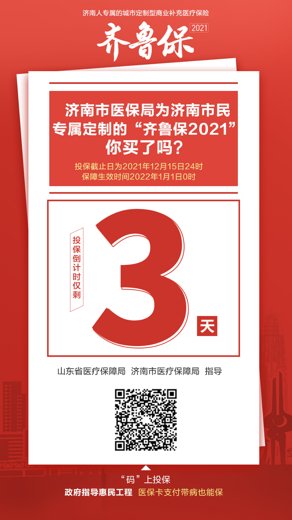 即日起,“齐鲁保2021”投保倒计时仅剩3天!