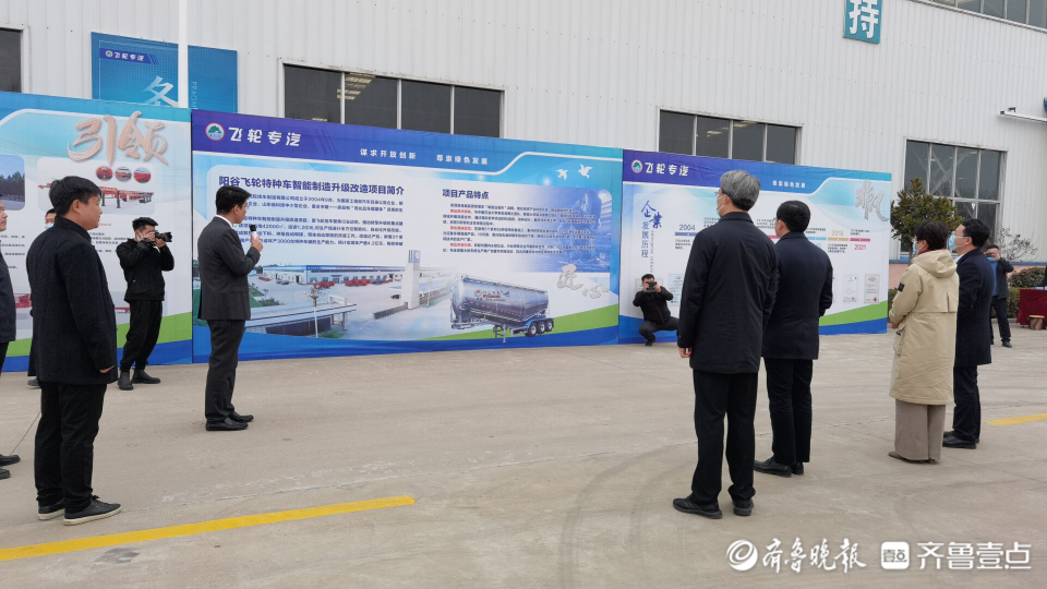 齐鲁晚报·齐鲁壹点 记者 李怀磊 16日下午,聊城全市高质量发展现场观摩会在阳谷的第五站观摩点走进阳谷飞轮特种车智能制造升级改造项目。该项目投资1.2亿元,通过引进自动焊接设备、喷涂机器人等,对生产线进行全方位智能化、自动化改造。全部达产后,年可实现产值4.2亿元,税收1300万元。 该项目占地160亩,2021年5月开工,目前部分生产线已经改造完毕。该项目车间所使用配件、板材等均选自宝钢、太钢、安钢等国内知名厂家,从源头把关,严格控制产品质量;产品涵盖各种罐体、半挂车系列、自卸车系列、高压危险品罐车系列等100多个品种。该项目的碳钢罐体车体生产线处于国内领先水平。