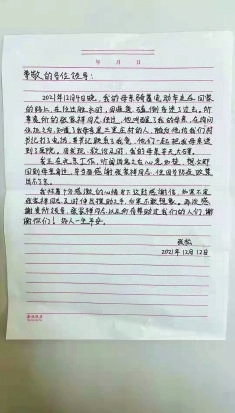 事后时隔十多天,除了家人,张家祥从没对外人说起此事。直到12月17日,一封来自北京的手写感谢信,才将他的这个爱心义举揭开谜底。