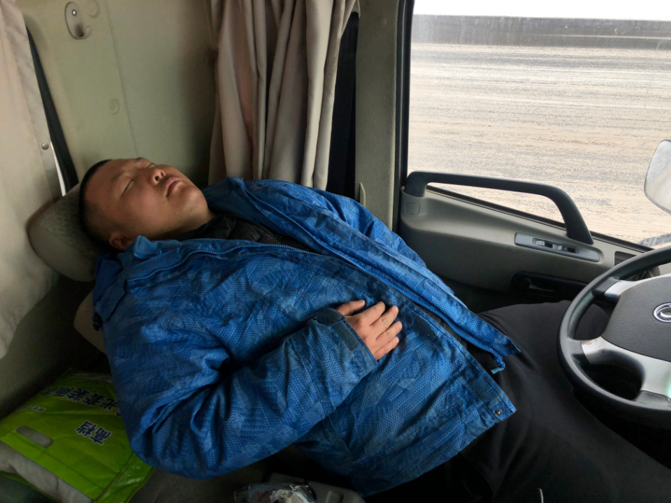 12个小时没有休息,累了陈磊就在车上眯一会。齐鲁晚报·齐鲁壹点记者 钟建军 摄