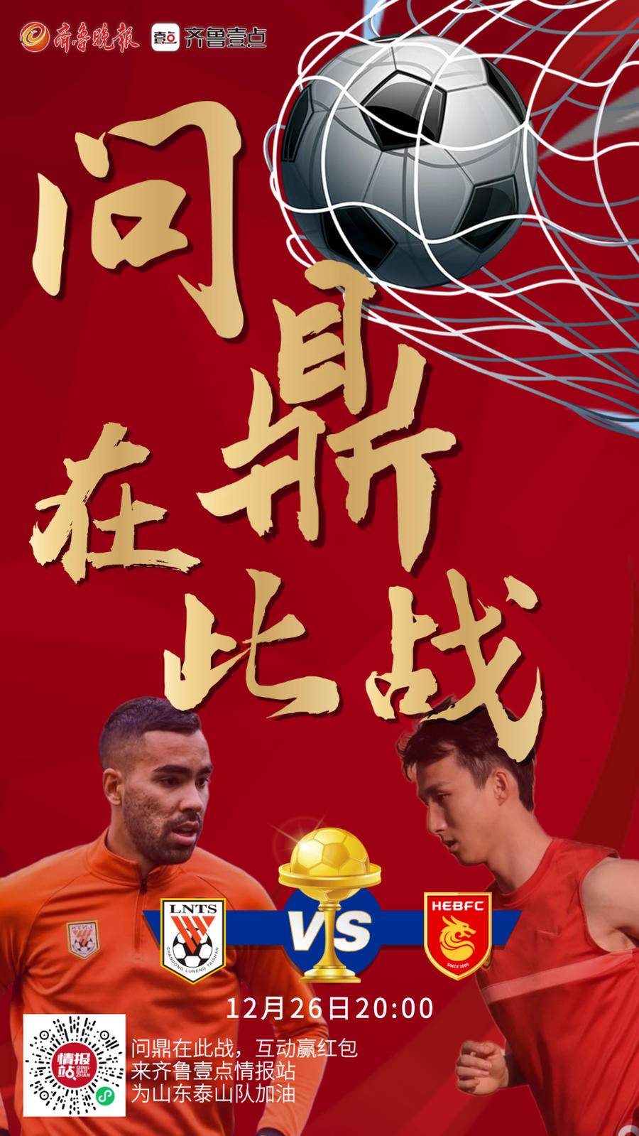 问鼎在此战,看球抢红包!齐鲁晚报·齐鲁壹点专题互动策划——问鼎在此战,来壹点发情报,一起助威山东泰山VS河北,更有球迷红包等你来拿!