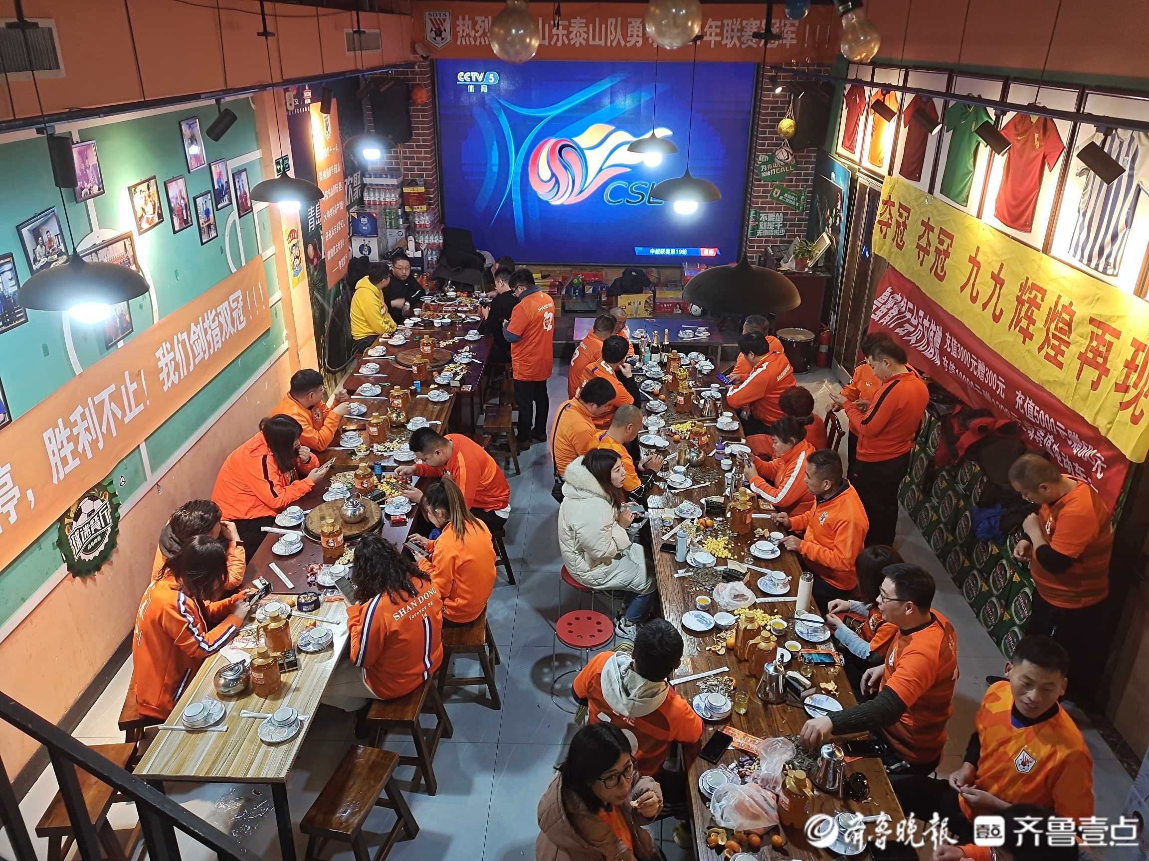 12月26日晚,济南鲁蜜餐厅,山东泰山和文化球迷协会的大批球迷聚集在一起,大家看电视直播,希望共同见证鲁能泰山队重获联赛冠军的时刻。